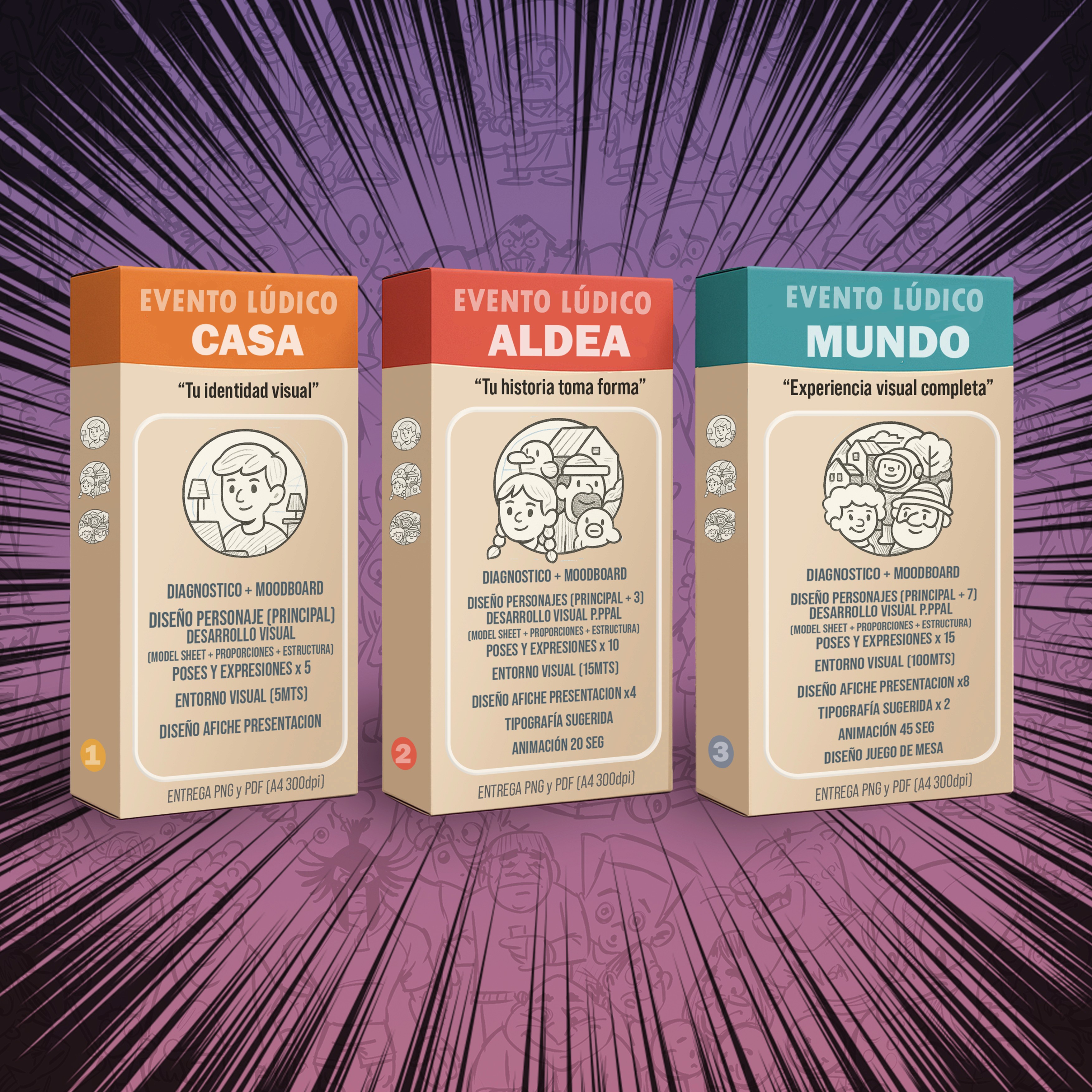 Creamos personajes, entornos y estilo. Bocetos y opciones hasta lograr un universo visual coherente y único.